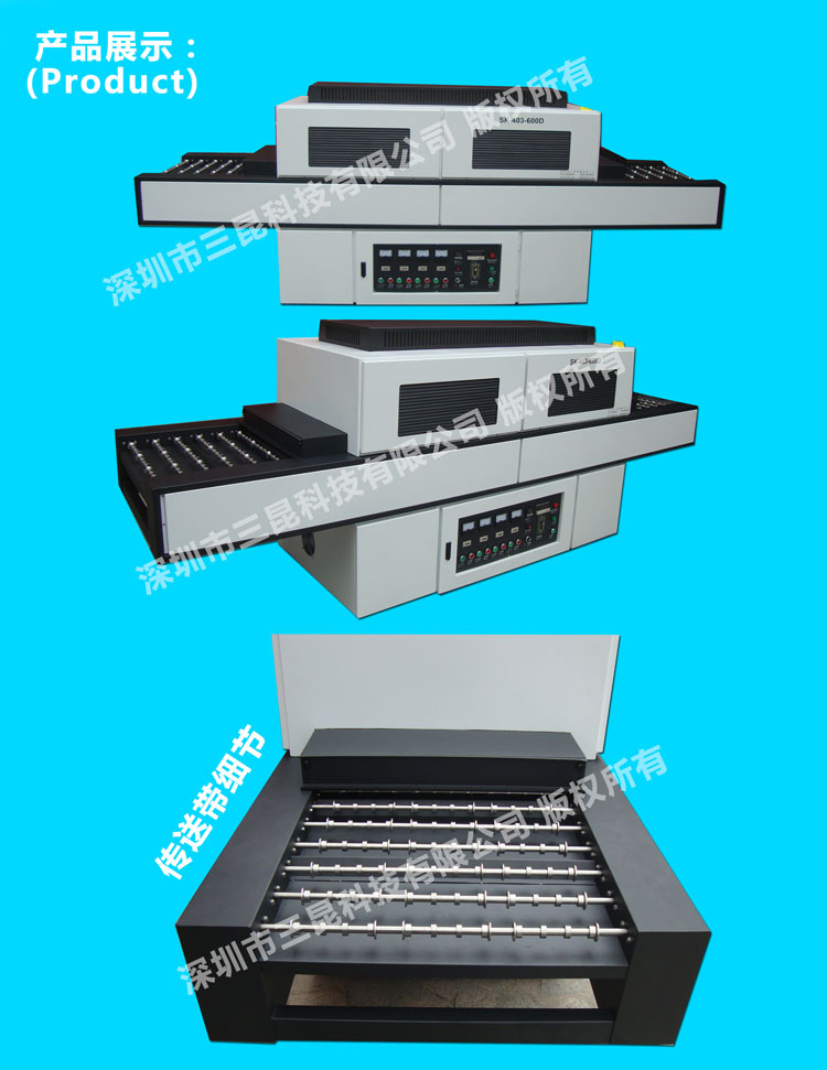 Design of multi lamp, high intensity, meet the printed circuit board process in high temperature high energy demand, according to the technical requirements of the flexibility to choose the light source lamp number, and before the matching process; can bear a certain weight of PCB products, smooth transportation, safety; variable frequency speed control of, high control precision; equipment system considering comprehensive performance, beautiful and practical.